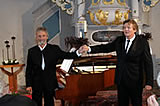 Wieder war es ein sehr emotionales Konzert, denn Jochen Kowalski verbinden viele persönliche Erinnerungen mit dieser Kirche. Das Programm, mit Werken von Schubert, Brahms, Loewe, Sarri, Purcell und Hasse wurde von den Besuchern mit viel Beifall aufgenommen, genauso wie die Solo Klavierstücke von Mozart und Chopin, die Dietrich Sprenger, einfühlsamer Begleiter von Jochen Kowalski, solistisch vortrug. Anschließend plauderte Jochen Kowalski noch lange bei einem Schwein vom Spieß, bei Kuchen und Kaffee, Wein und Bier mit den Dorfbewohnern in bester Stimmung. Pfarrer Zastrow und die Kirchgemeinde bedankten sich bei den Künstlern mit einem Korb mit frischem Gemüse und Obst aus dem Havelland.